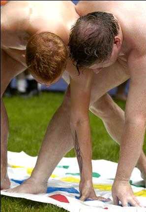 The simple and popular game “twister” is another favourite activity according to Aaron’s experience in helping others become comfortable with social nudity. The game involves everyone being completely clothes free and then matching the body appendage (hand, foot) with a particular colour. The entanglement of the bare bodies creates the “fun” aspect of the activity.