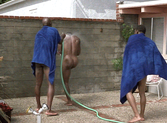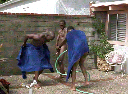 The film stars Taye Diggs who’s completely – but modest – naked in the above .gif along with his co-stars covered in only blue towels: Omar Epps and Richard T. Jones.